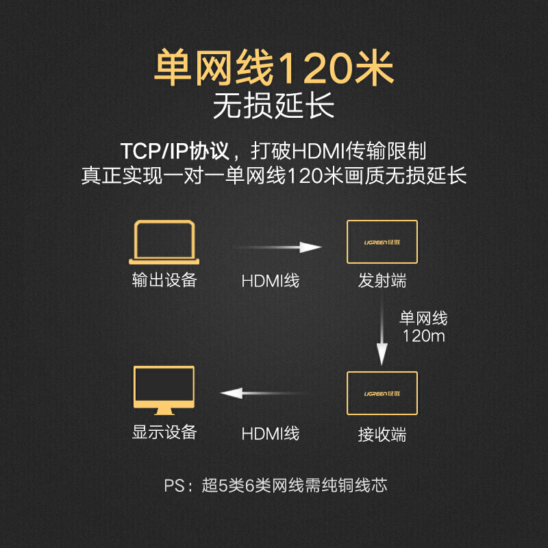 Green Union 40280 HDMI network extender 120 meters to RJ45 network port single network cable HD signal amplifier