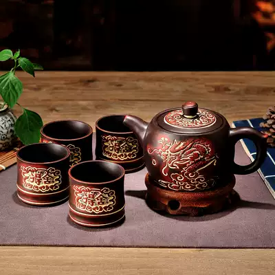 Retro Yixing large capacity purple sand teapot 300ml tea maker Office Home tea cup kung fu tea set set