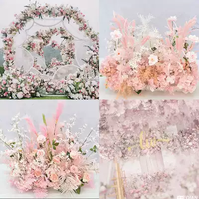 Wedding props simulation flower row pink color line Flower Ball stage road guide flower hotel wedding hall decoration set flower wall