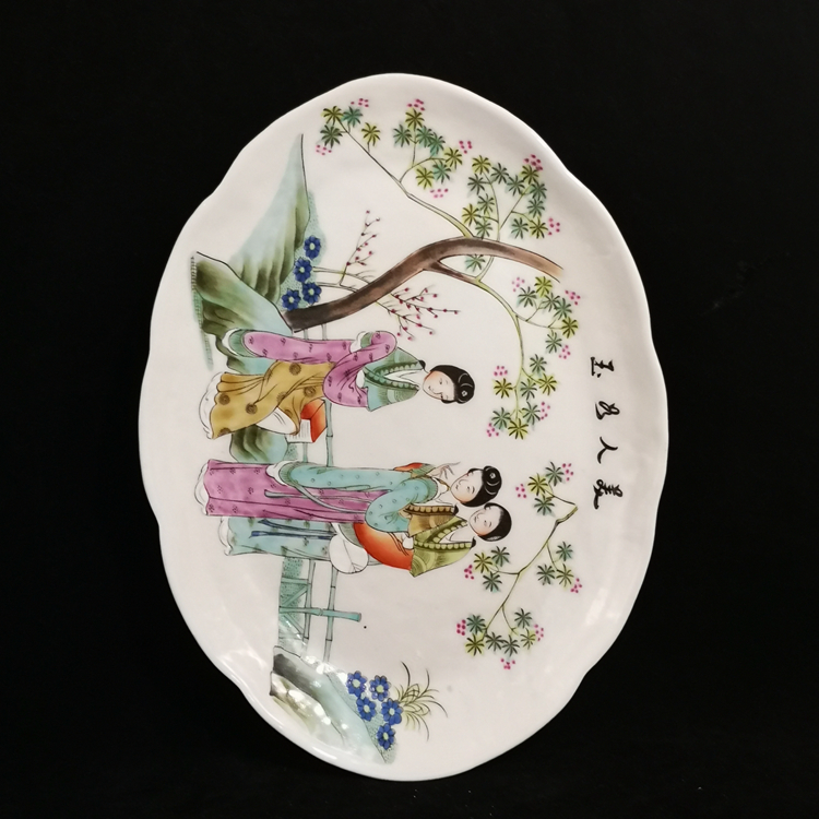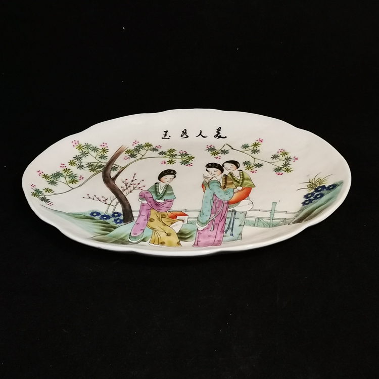 China Porcelain Powder color Beauty such as jade Tutea tray Pot Bearing Melon Fruits Pan Antique Old Goods Old Objects Collection Porcelain Pendulum Pieces