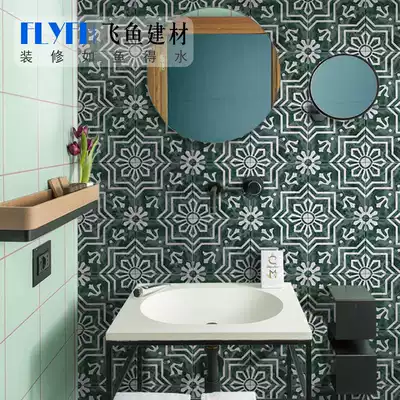 Moroccan dark green retro flower tiles homestay dressing room tile kitchen dining room balcony courtyard garden wall tiles
