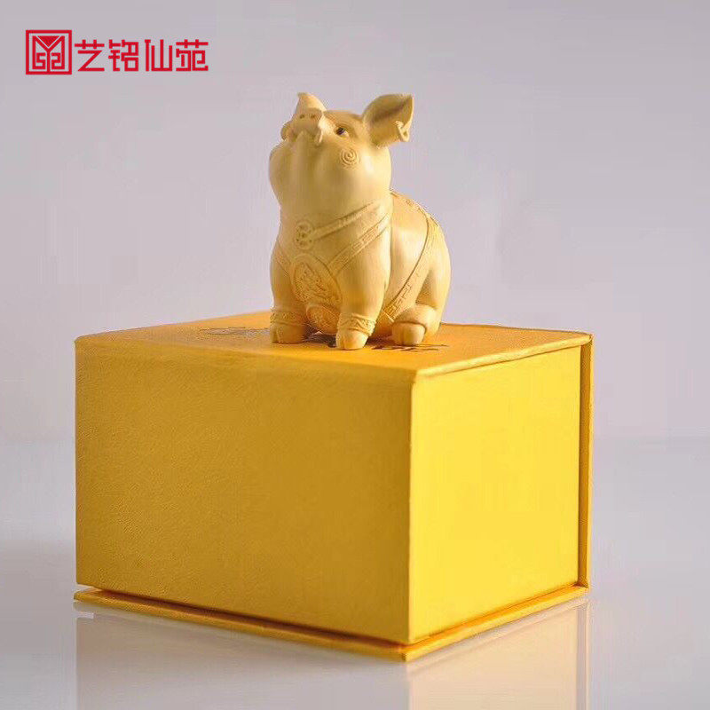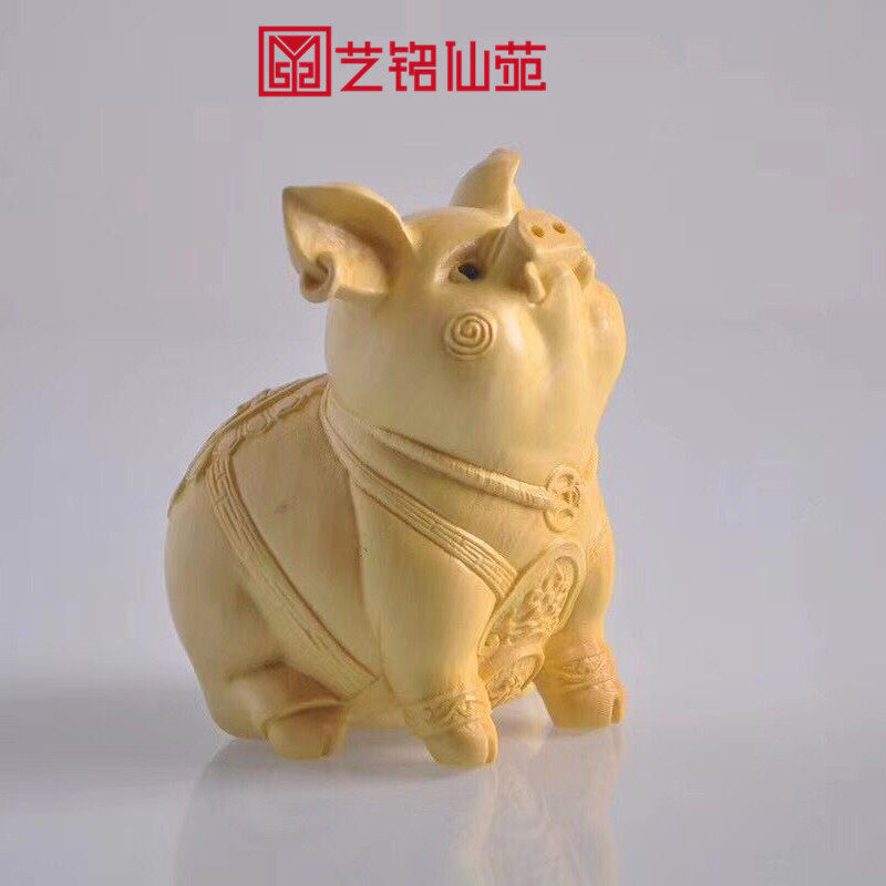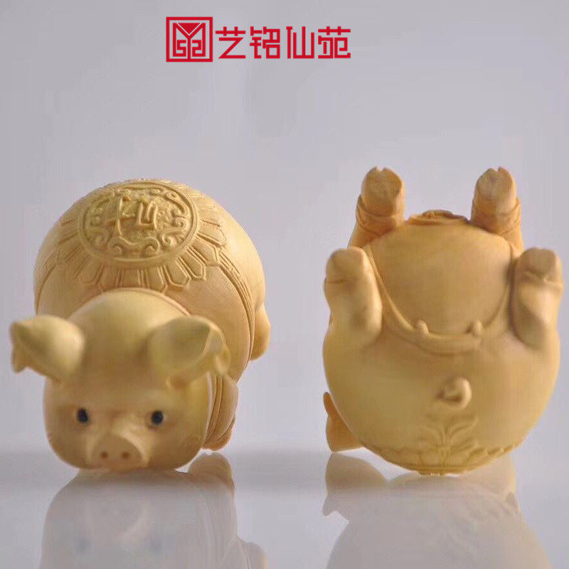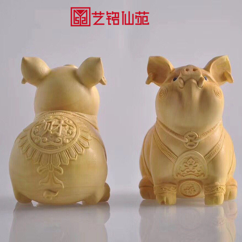 Yellow Yang wood carvings Caifu Pig Wooden Craft Gift Hem Accessories at the bottom customizable logo On-board Cute Pig Creative Pendulum