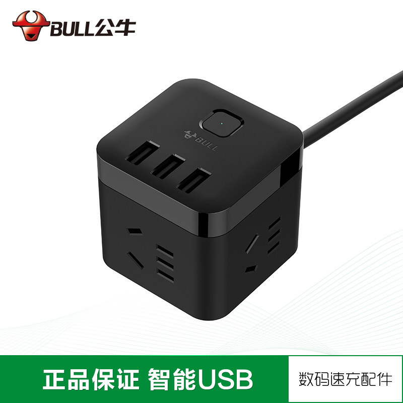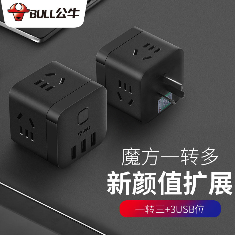 Bull Black Magic Square Expansion Converter Cubic Square Charging Head Socket Home Wall Used One Turn