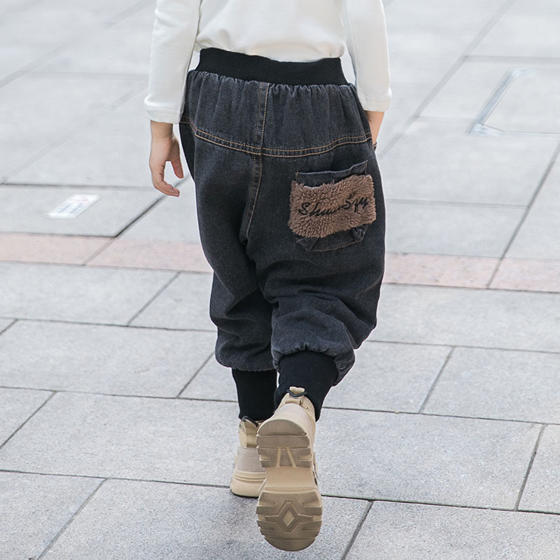 Girls' velvet thickened jeans 2022 new daddy western style trendy big children's autumn and winter loose trousers