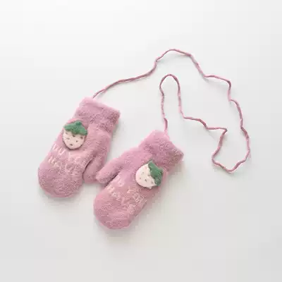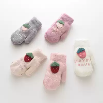 Winter Korean version of the girl's finger gloves thickened winter children's finger plush gloves 4-8 years old cute little girl
