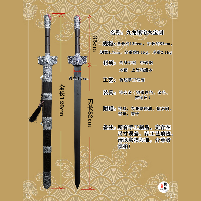 Longquan Hidden Dragon Treasure Sword Kowloon Bagua Sword Town House Sword Long Sword Epee Collection Gift Greatsword Unbladed