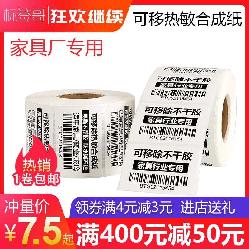 Removable thermal label paper easy to tear without leaving glue sticker 60*40 100 80 70 50 30 three anti-thermal synthetic paper waterproof and tear-proof furniture plate glass book food sticker