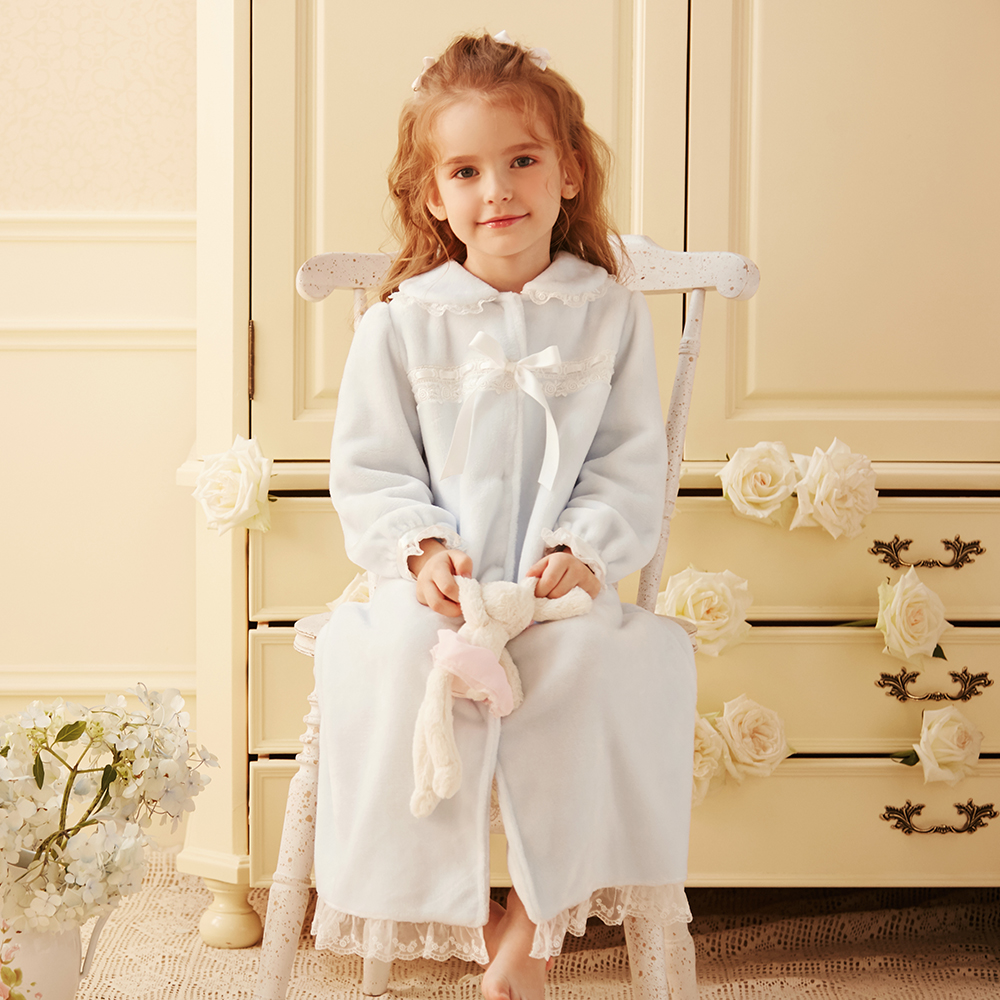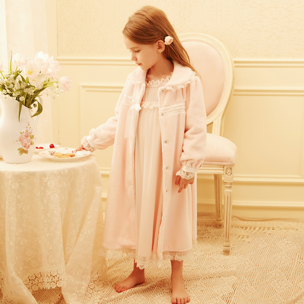 RoseTree girls nightgown flannel autumn and winter children's pajamas little girl princess baby coral fleece bathrobe