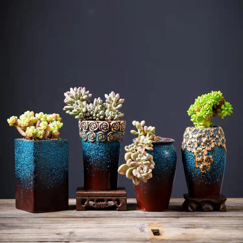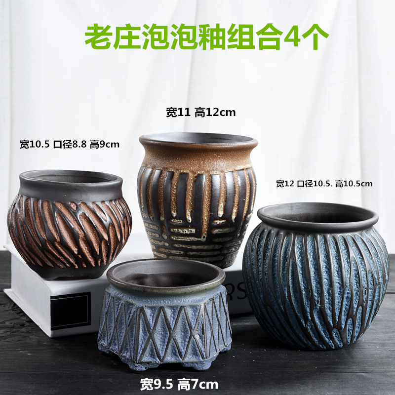 Old pile flower pot pottery pot ceramic retro old Zhuang master crude pottery creative Chinese style meat meat large meaty small flower pot