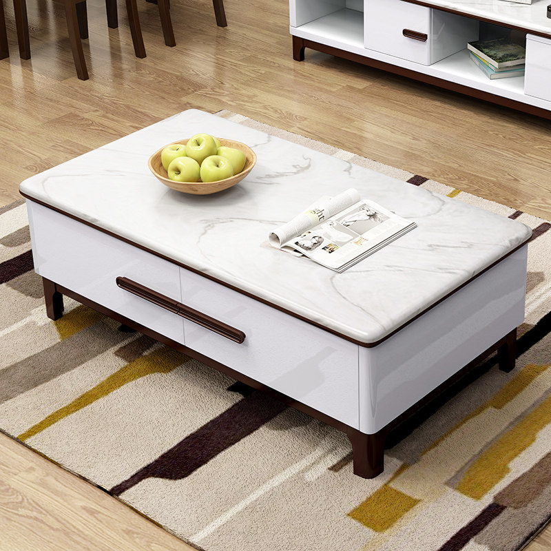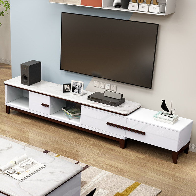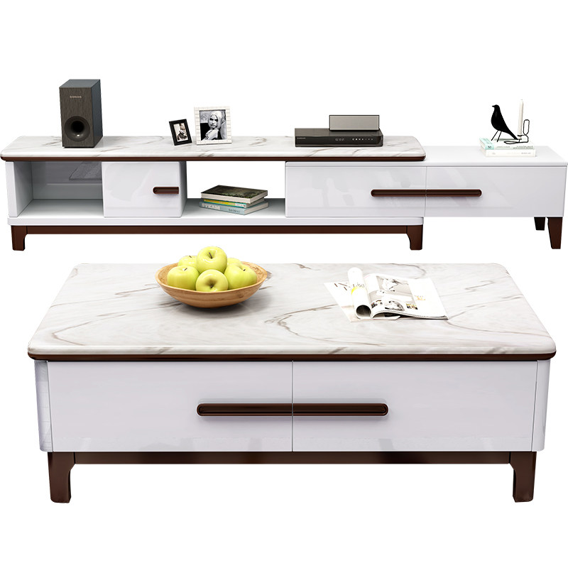 Coffee table TV cabinet combination set modern simple retractable marble living room small apartment TV series cabinet furniture