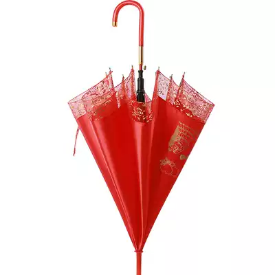 Red umbrella red umbrella long handle straight rod lace bride Dowry wedding wedding supplies