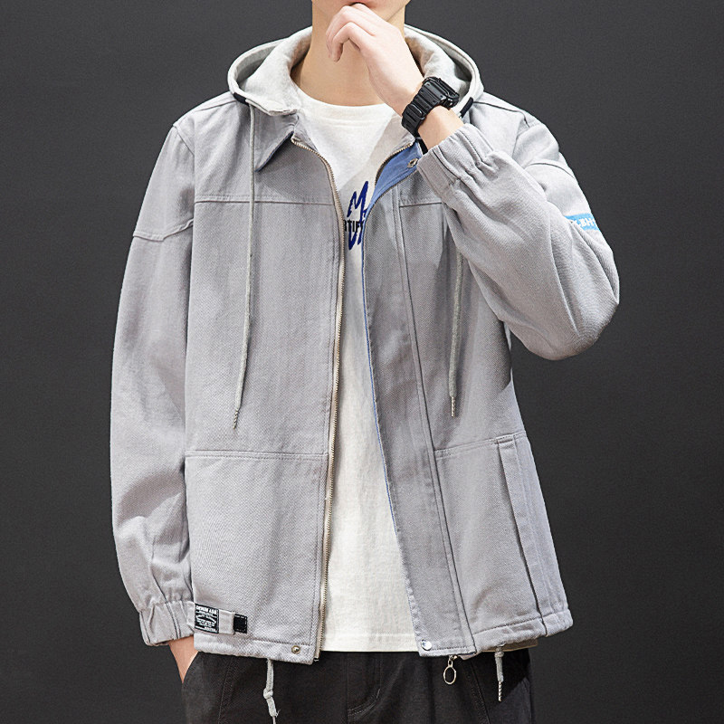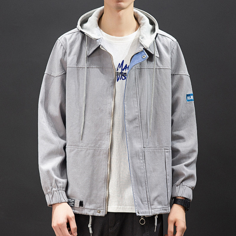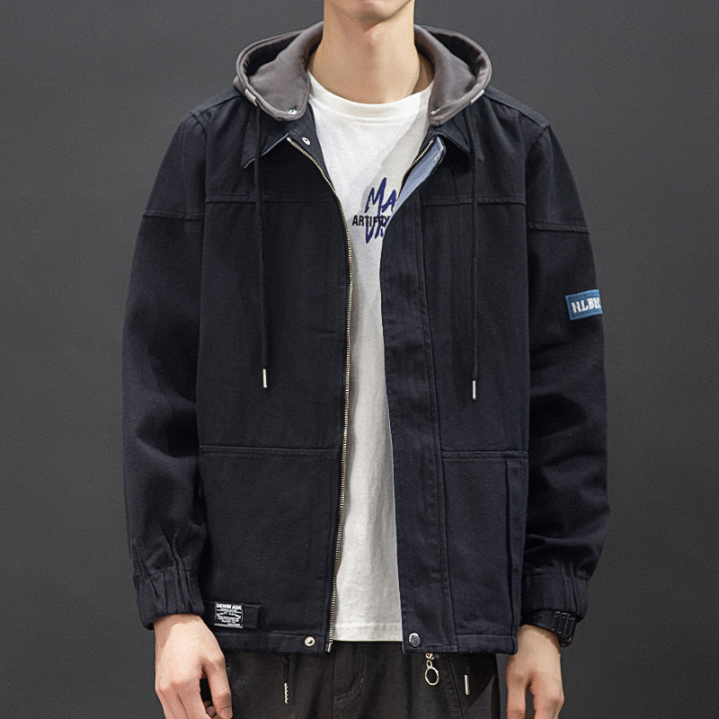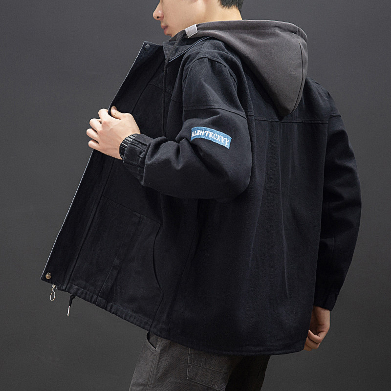 (Special offer) Hooded jacket men's loose all-match spring and autumn Korean style black trendy jacket men's outerwear trendy belt hood