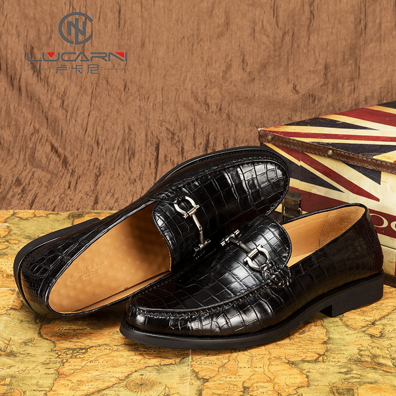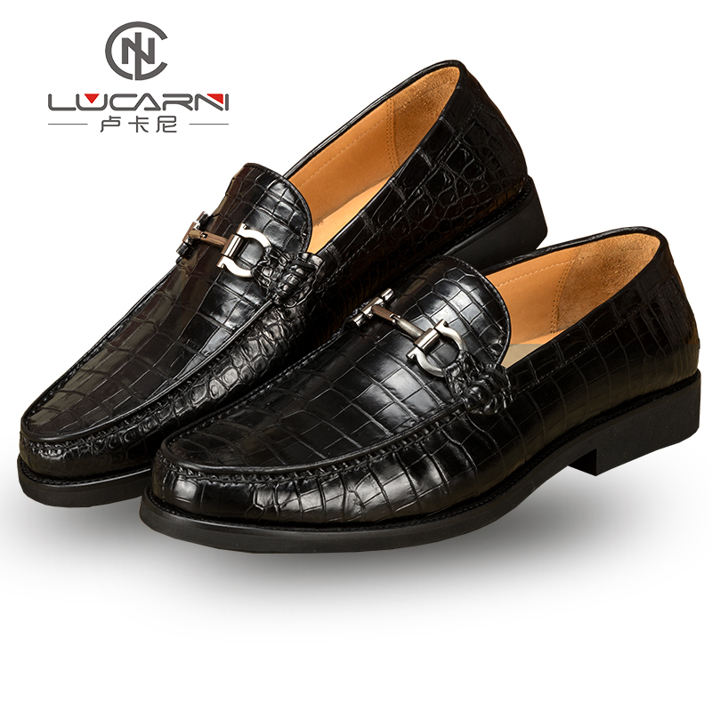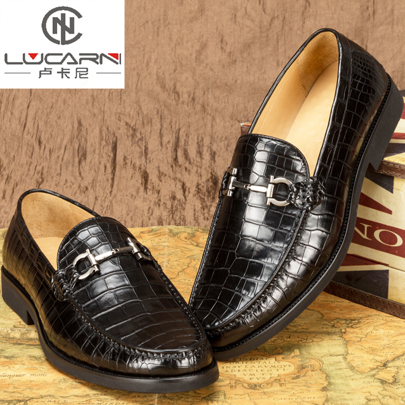 Crocodile fur shoes men leather men crocodile belly business leisure low gang head round head one foot bean shoe tide