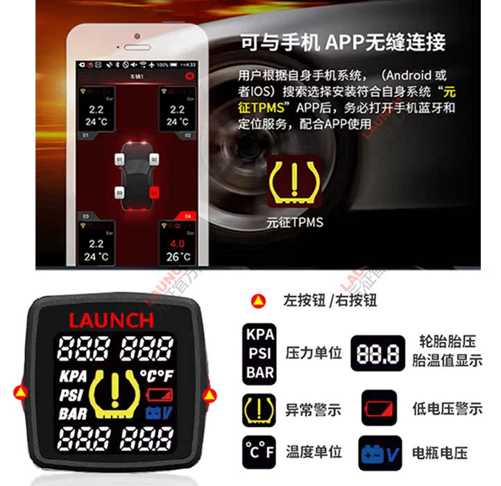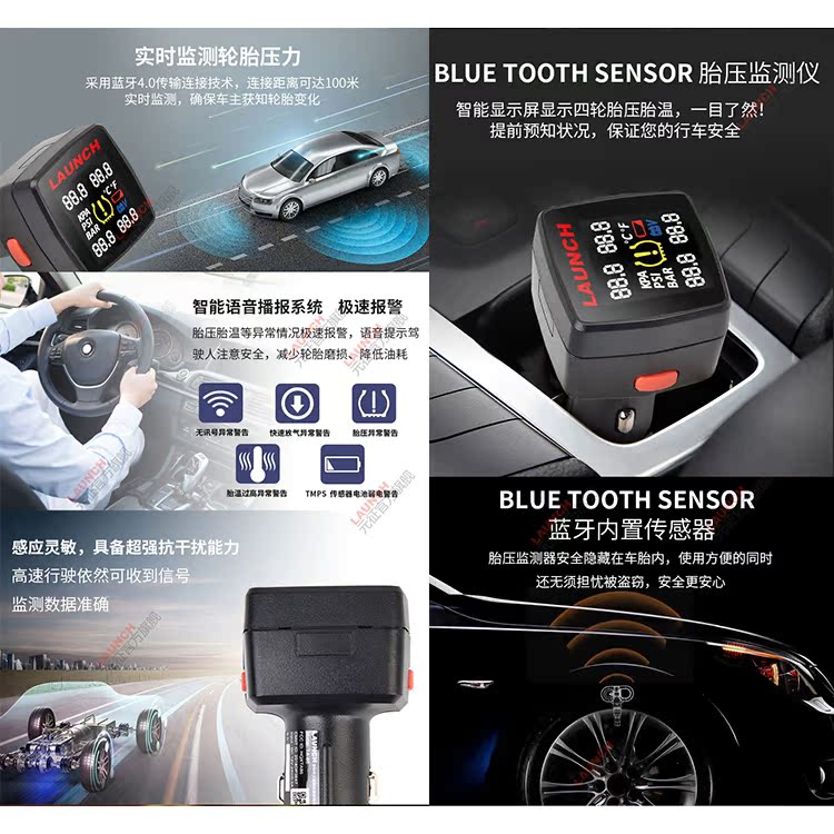 Car tire pressure monitor Bluetooth built-in tire pressure sensor Mobile phone tire temperature and pressure voice alarm display