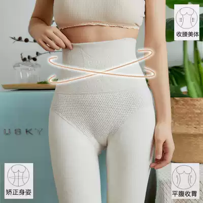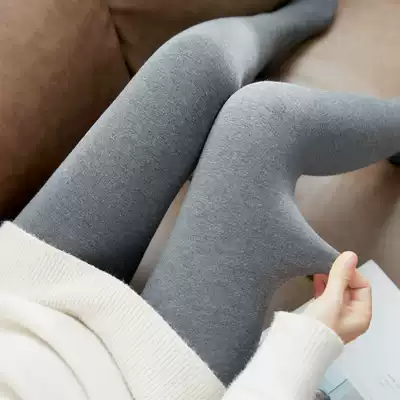 Plus velvet high waist abdomen pants women's large size autumn and winter cotton gray hip shape joint foot pressure pants outside