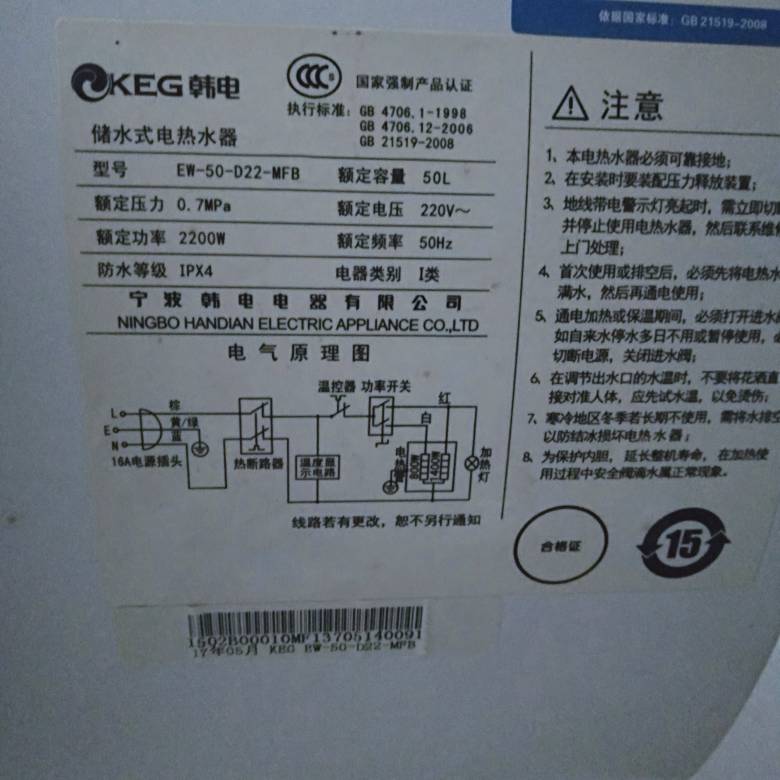Application of KEG Korean Electric EW-50-D22-WFB electric water heater Anti-electric wall Anti-electric wall hot and cold into the water outlet Seven stars