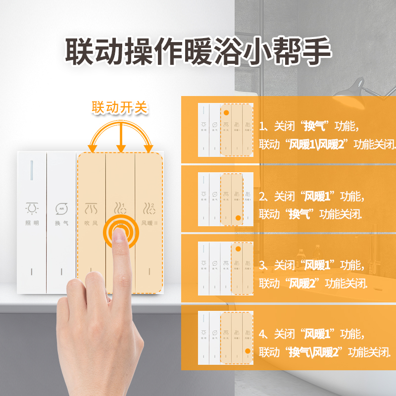 gelan bath master switch five open home universal bathroom switch five-in-one bathroom large board switch heater
