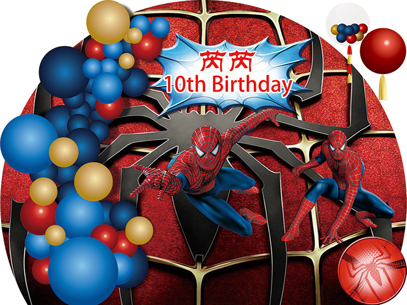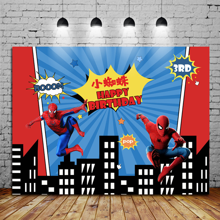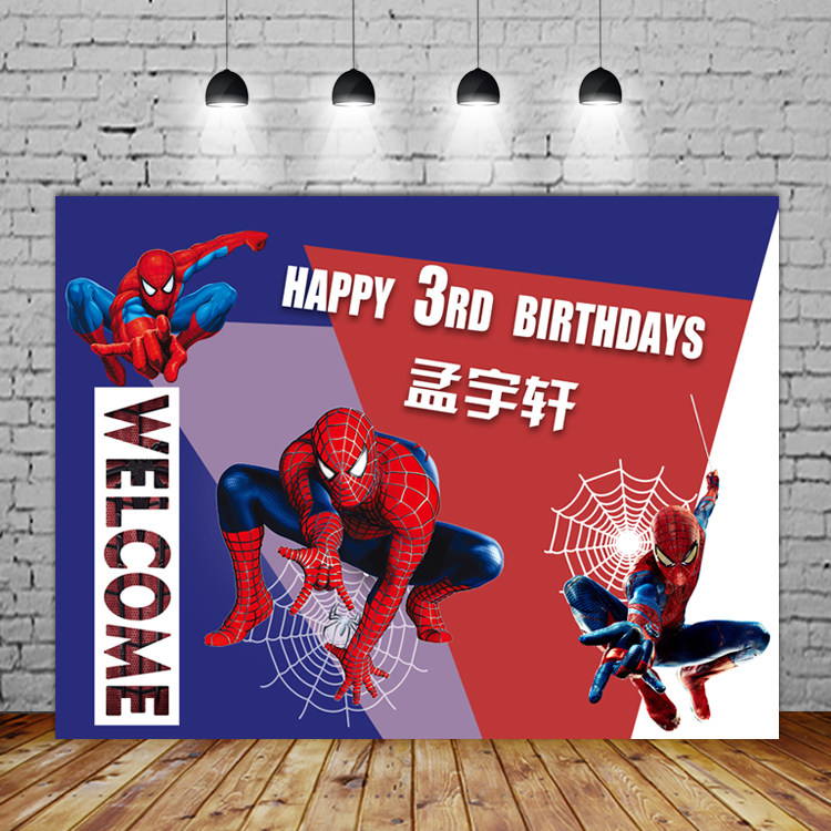 Spider Man Birthday Background Wall Male baby boy's birthday Full moon Hundred Day Banquet Photo Poster Party Placement Dessert Bench Kt