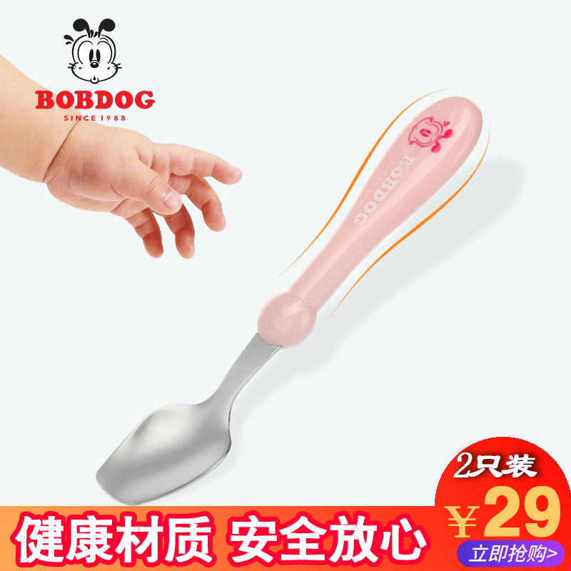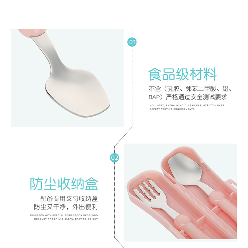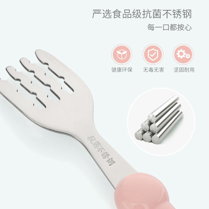 Babu bean children's tableware stainless steel fork spoon set Male baby training spoon fork Child baby auxiliary food spoon Female