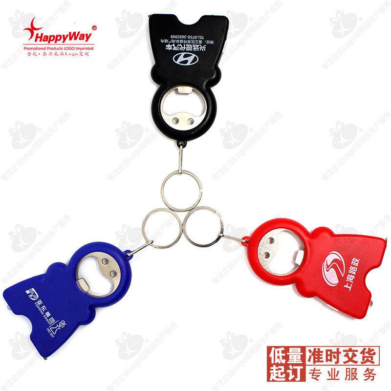 Tape measure key chain custom logo multifunctional bottle opener flashlight community advertising promotion opening distribution gifts