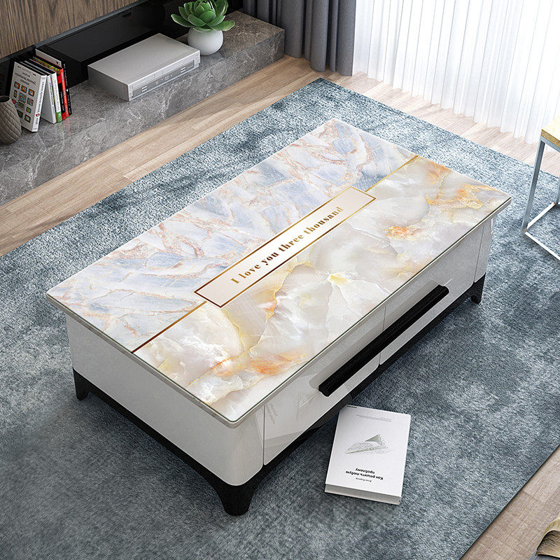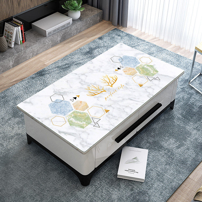 Marble grain coffee table tablecloth pvc waterproof and oil-proof leave-in household rectangular mesh black tea mat Nordic style