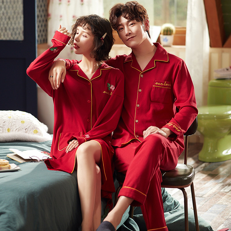 Autumn and winter red couple married with newlywed dress dress pure cotton pregnant sleepdress spring and autumn bathrobe home suit