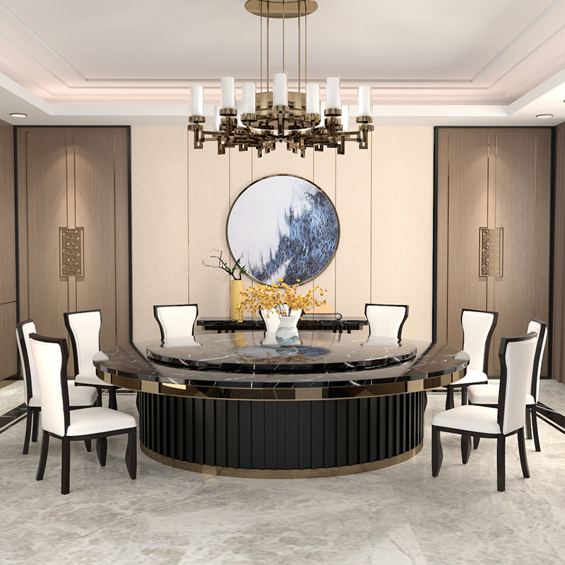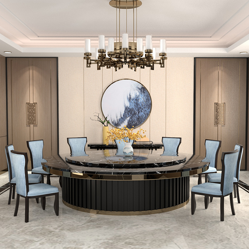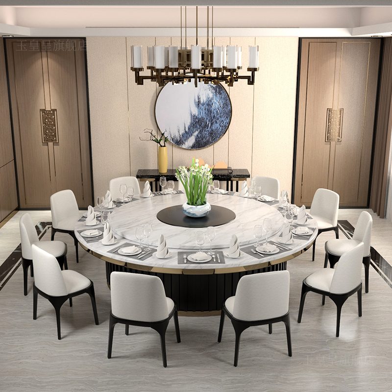 Jade Emperor presents hotel table electric big round table Chinese hot pot table combined table and chairs imitation marble swivel table