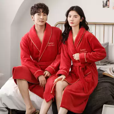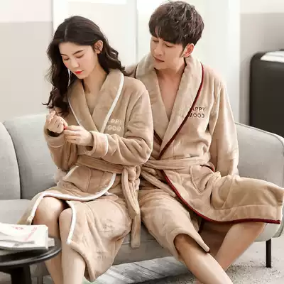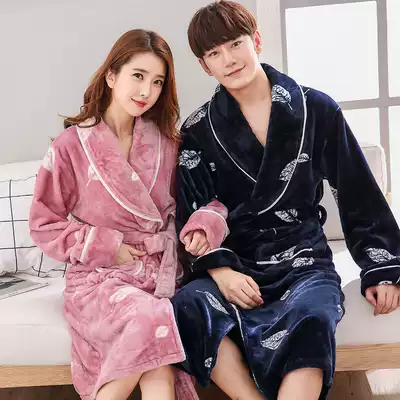 Winter coral velvet robes couples autumn and winter ladies nightdresses thickened extended flannel men's soil bathrobe pajamas