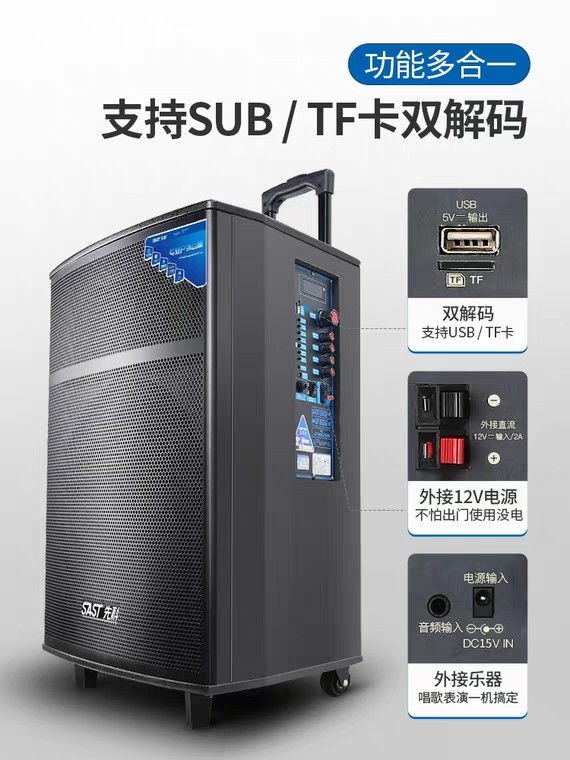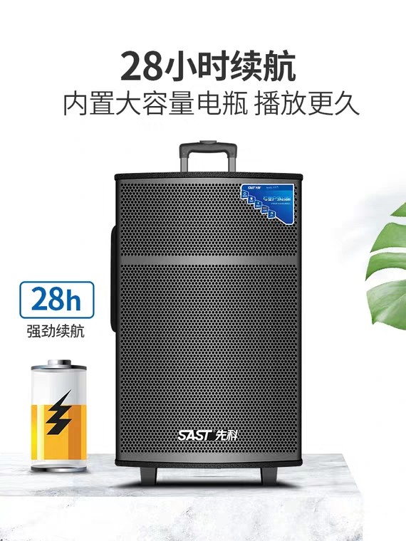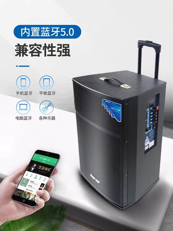 Senco outdoor high-power square dance audio Home K song with wireless microphone Outdoor mobile portable charging rod Bluetooth speaker Three-frequency 15-inch heavy subwoofer instrument player