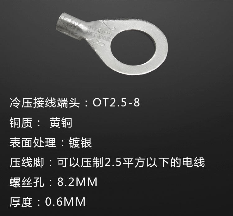 Cold pressed wiring terminal wiring end head round bare end head OT2 5-8 1000 only bag