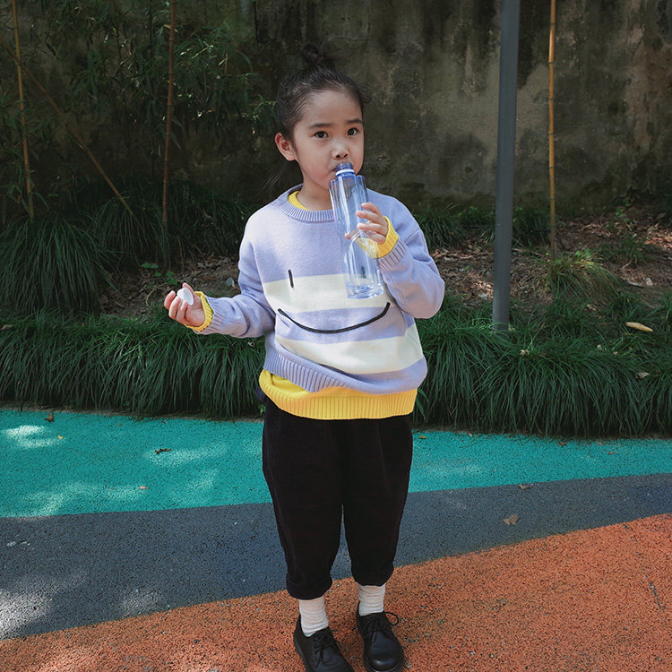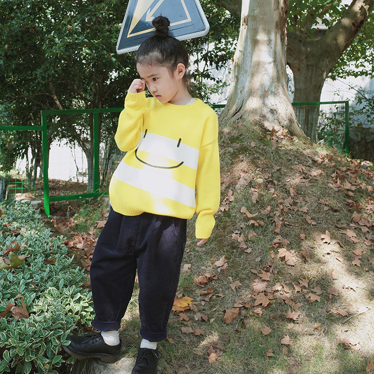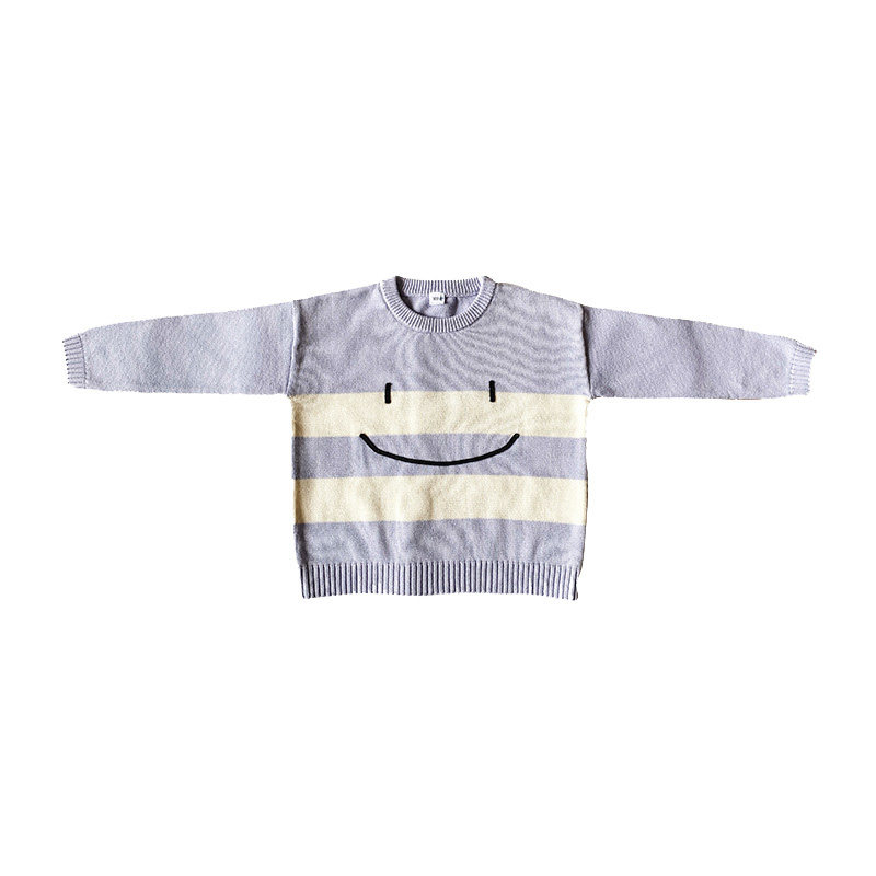 Doll Aimei Christmas New Year's Model Small, Middle and Big Children's Cotton Round Neck Striped Cartoon Smiley Loose Knitted Sweater