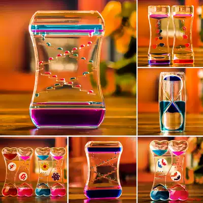 Qiwei Transparent bubble toy Dobao double heart liquid hourglass slide Decompression artifact Funnel floating bedroom gift Dripping water