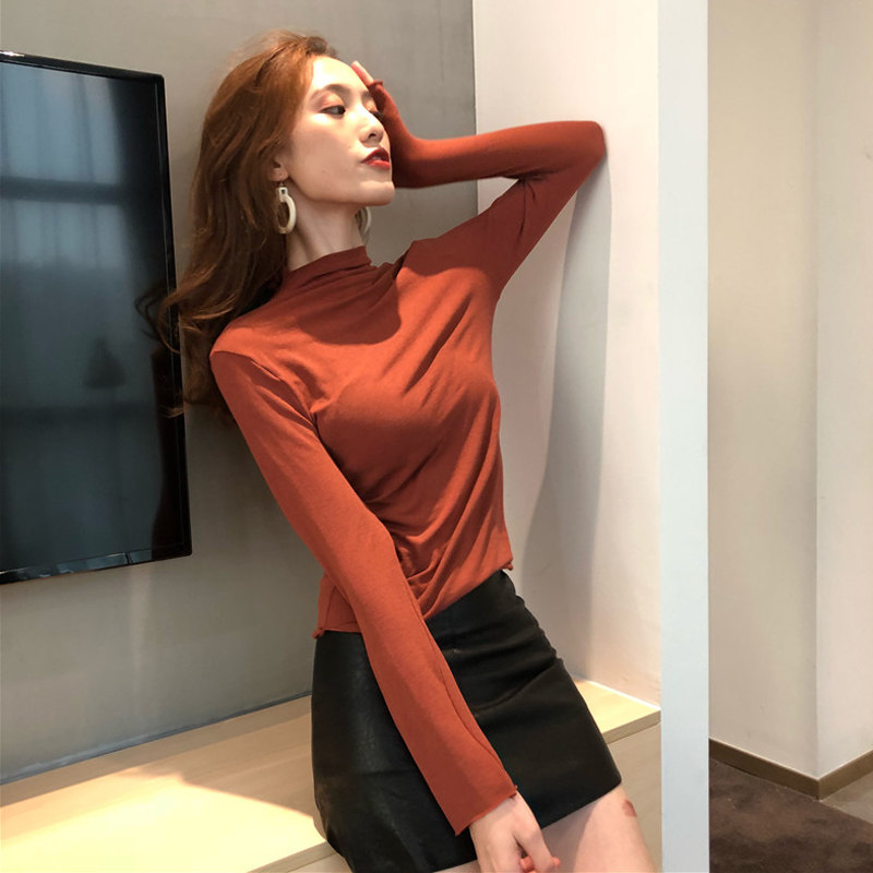 Semi-high collar base shirt Women autumn and winter 2021 New Tide inside strap ins skinny high neck top design sense