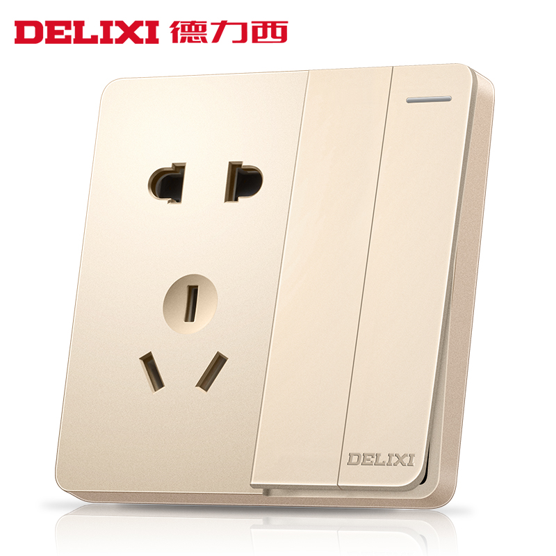 Delixi with switch socket panel household wall gold 2 two open five holes double cut two open double switch 5 holes concealed