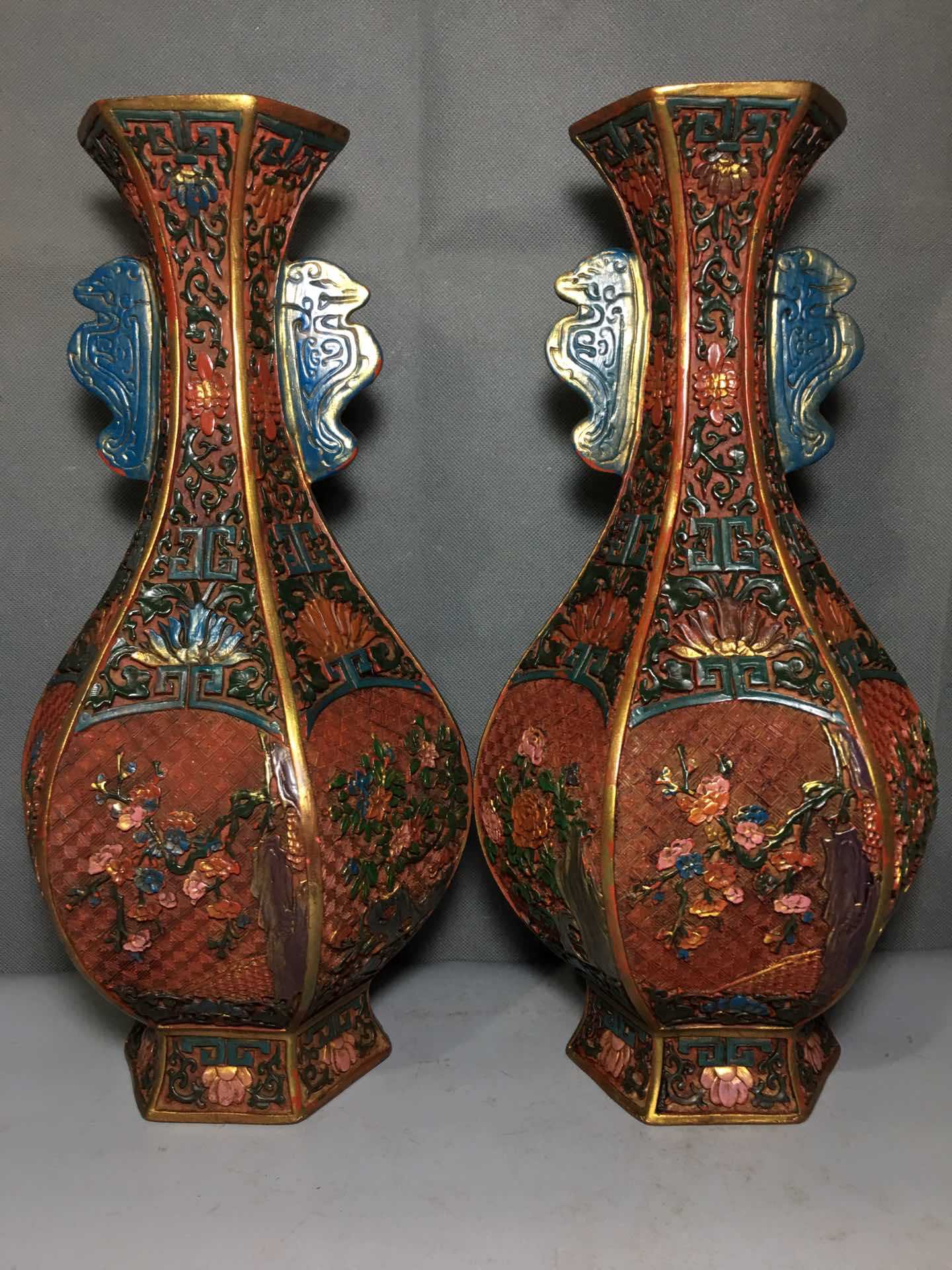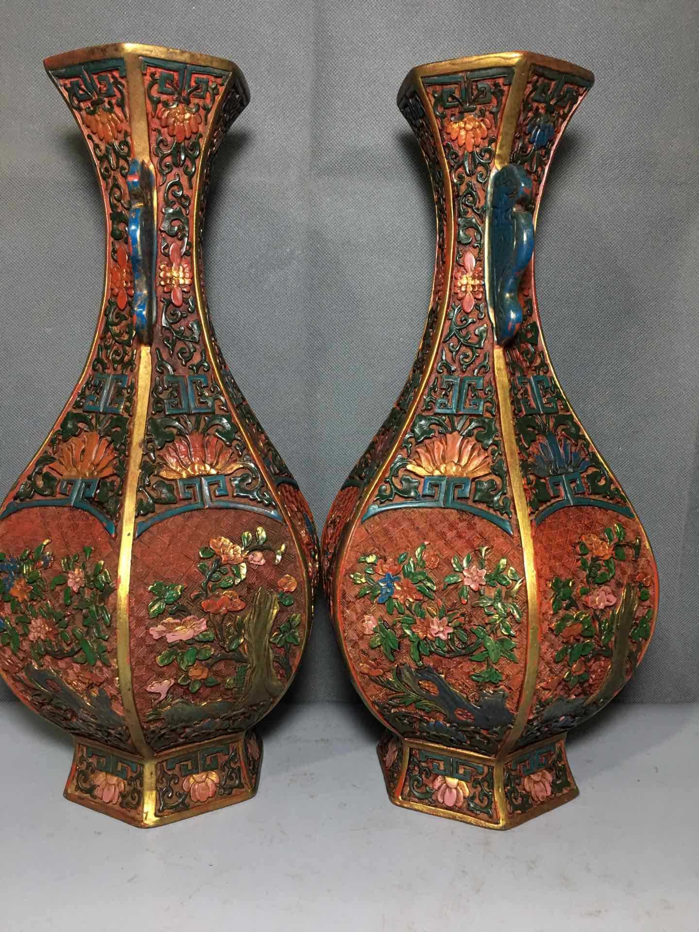 Folk Collection Old Beijing lacquerware Old lacquerware vase insert screen large lacquer Red Color Painted Vase Old Lacquerware Flower Insert Bottle