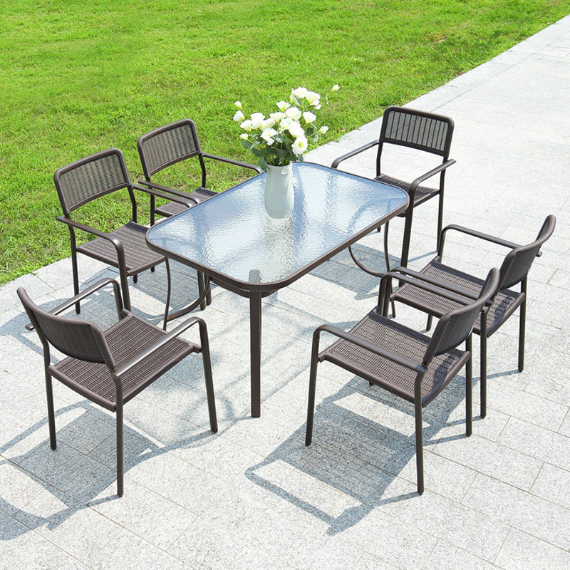 Brown Effie chair (4 hair) 50 Folding water pattern glass round table 60 Black tempered glass square table 60 Black tempered glass round table 60 Water ripple glass round table 60 Assembled black steel