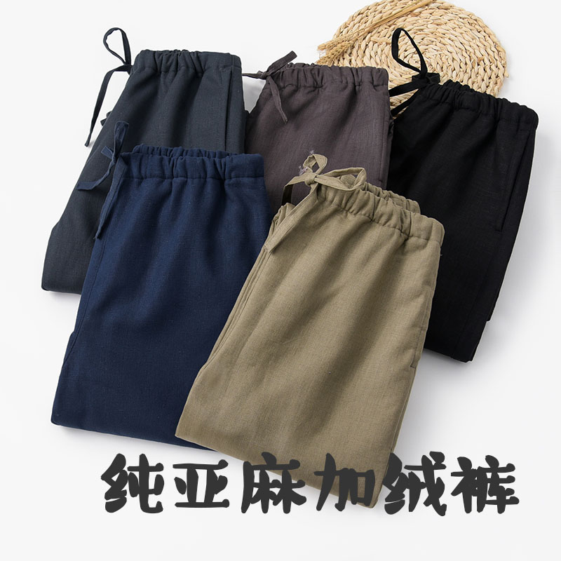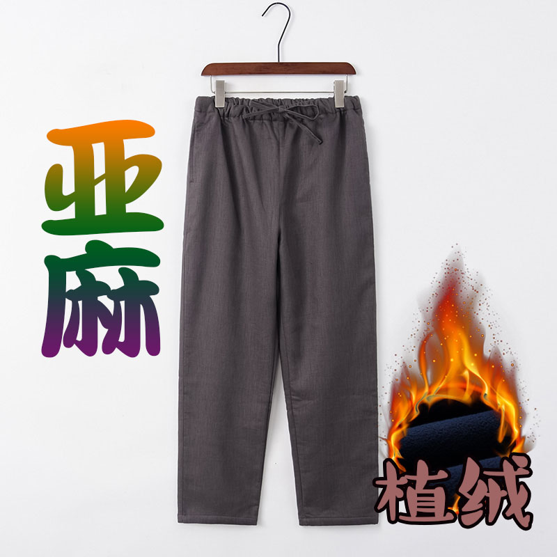 Linen Garnapped thickened Tang Pants Men's Autumn Winter China Wind Loose Casual Pants Warm Long Pants Chinese Cotton Pants