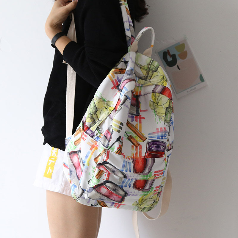 NR new Harajuku graffiti print backpack Female Korean casual school bag Female college student high school backpack Women's double shoulder