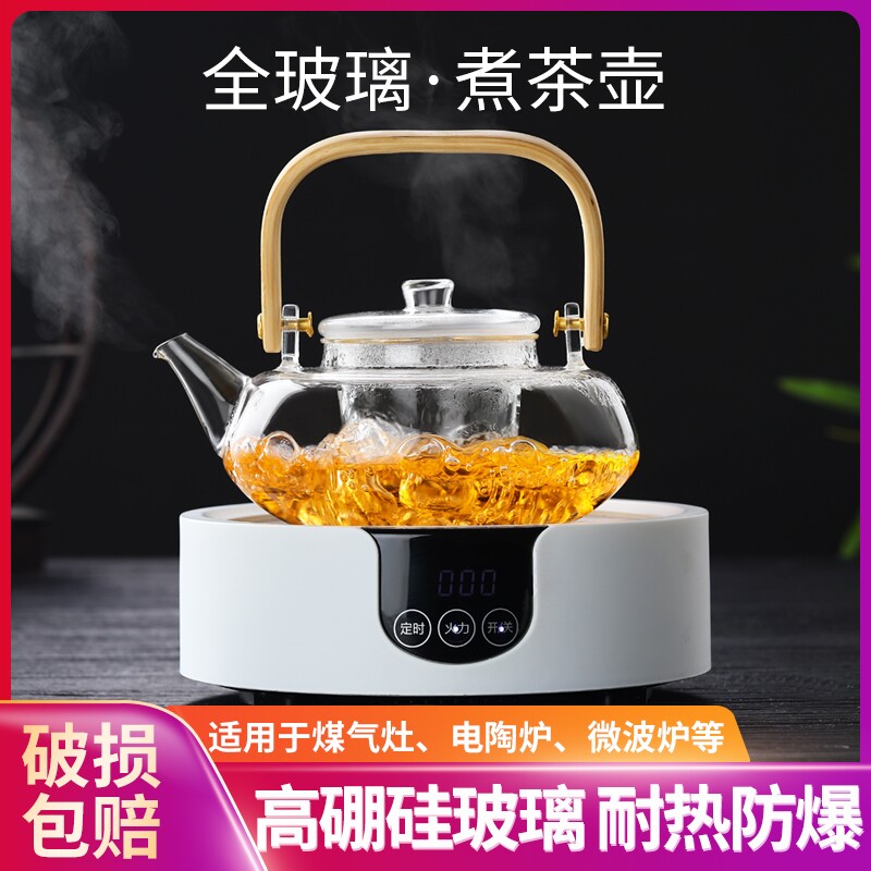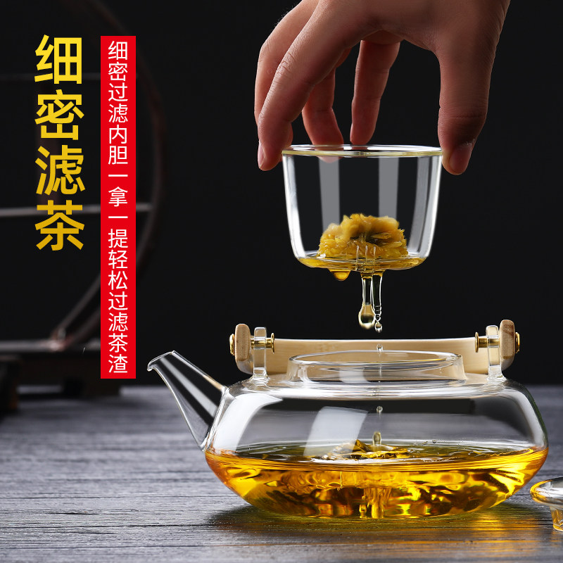 Transparent glass tea set Household teapot heating beam pot High temperature tea maker thickened cooking small set single pot