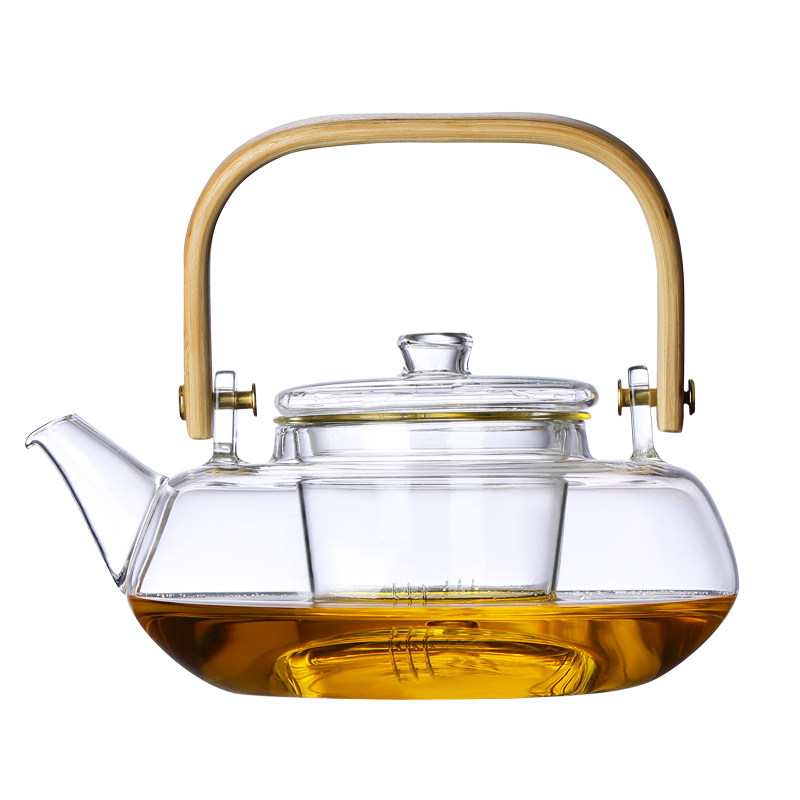 Bamboo handle Transparent Flat beam Pot 800ml