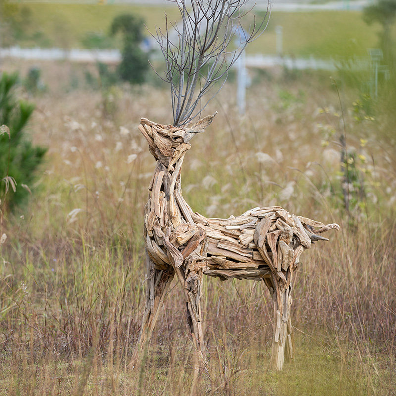 Residence Slow Living Outdoor Woody Deer Swing Piece Plum Blossom Deer Decorated Patio Garden Lawn Placement Landscape Animal View