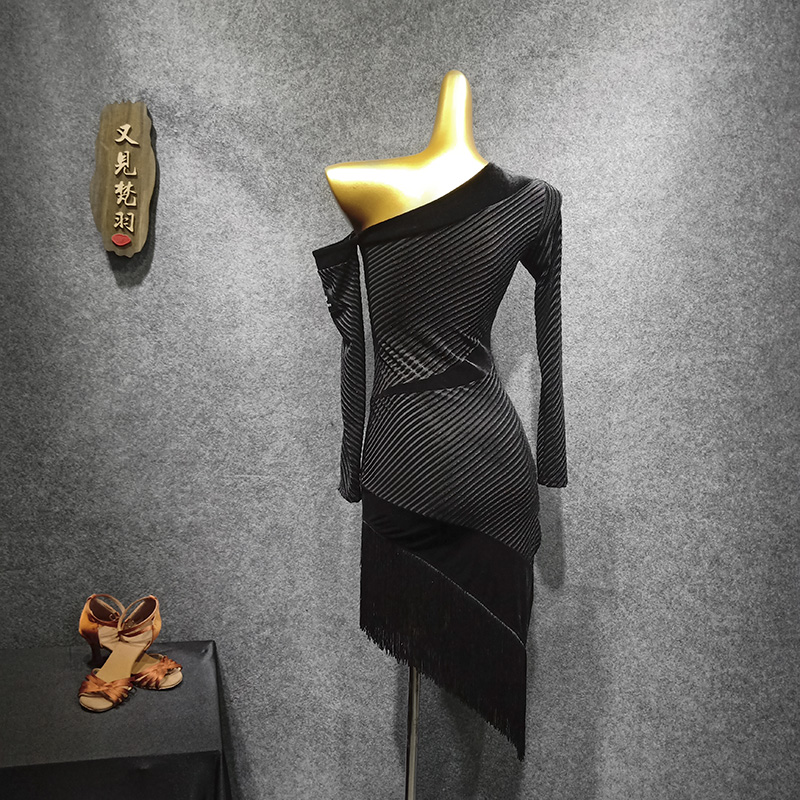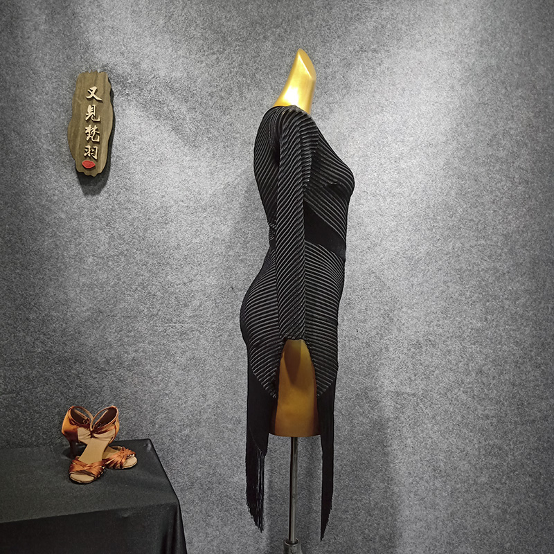 See also Fanyu Latin dance performance costume striped velvet leaky shoulder long-sleeved costumes tassel dress LW406