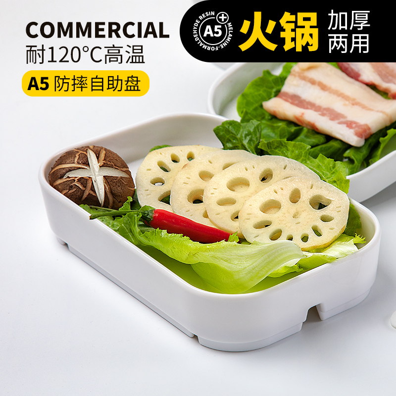 Melamine imitation porcelain plastic tableware plate meat plate hot pot tableware hot pot plate dual-use non-slip hot pot plate