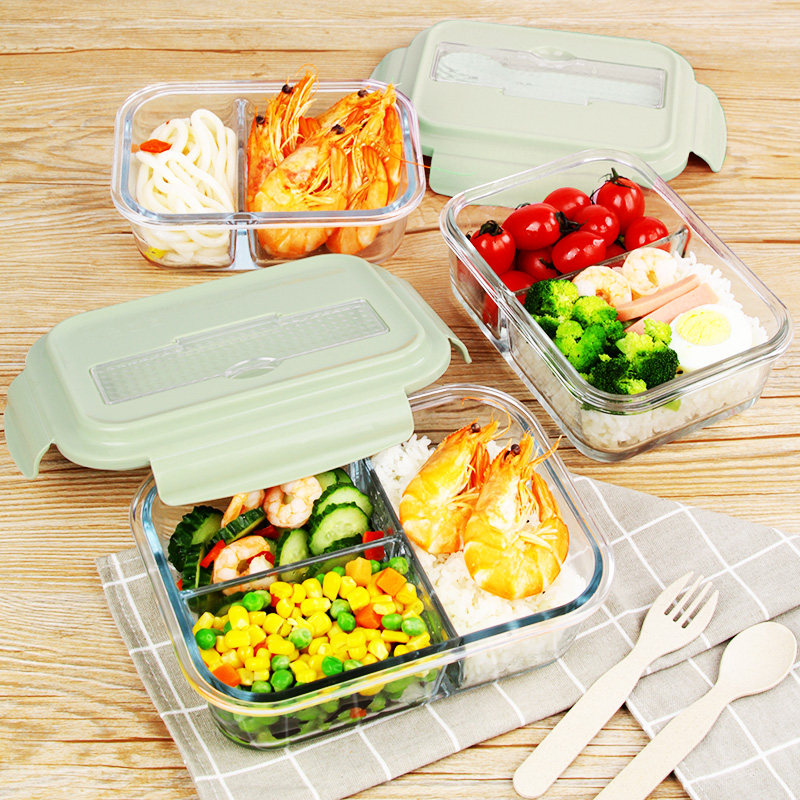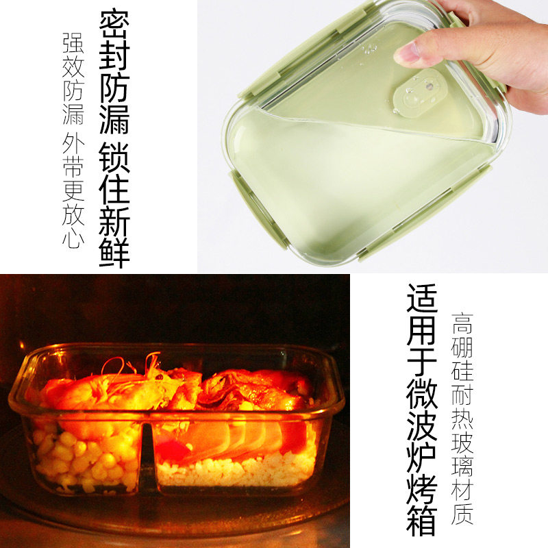 Glass lunch box Microwave oven special bowl separation preservation box Household sealed storage bowl Office workers with rice lunch box