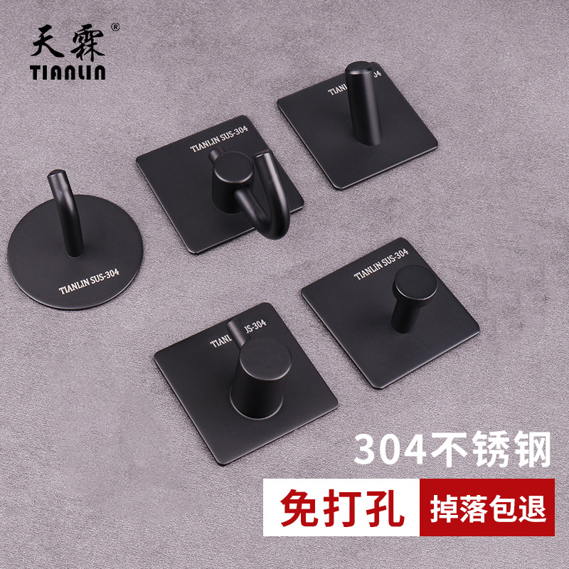 Nordic creative hook non-trace nail wall hanging bathroom black clothes hook wardrobe hook viscose non-perforated coat hook