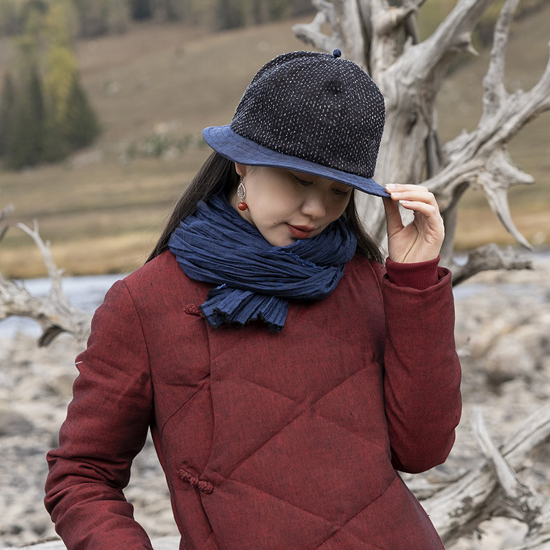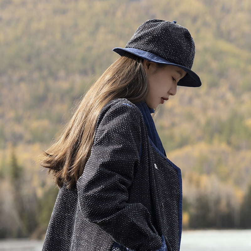 Moshang Flower Kailan Lapel (Fuxing Snow) Cotton Splicing Fragrant Cloud Yarn Six-petal Hat Dome Wide-brimmed Hat Sunshade Sunscreen