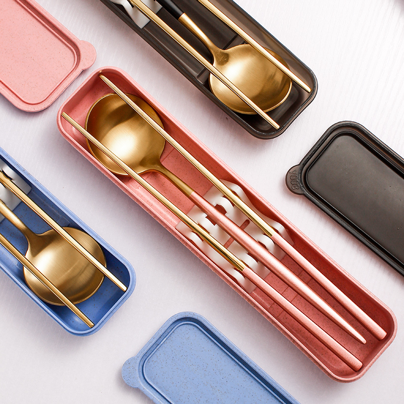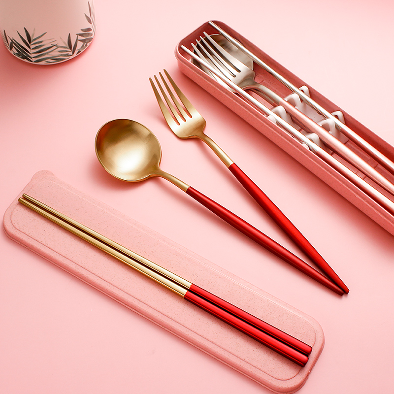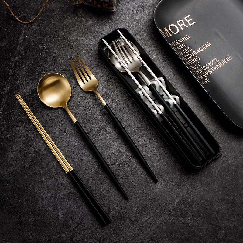 304 Portable Stainless Steel Chopsticks Spoon Cutlery Sets Box Cutlery cutlery Three sets fork Spoon Suit Students