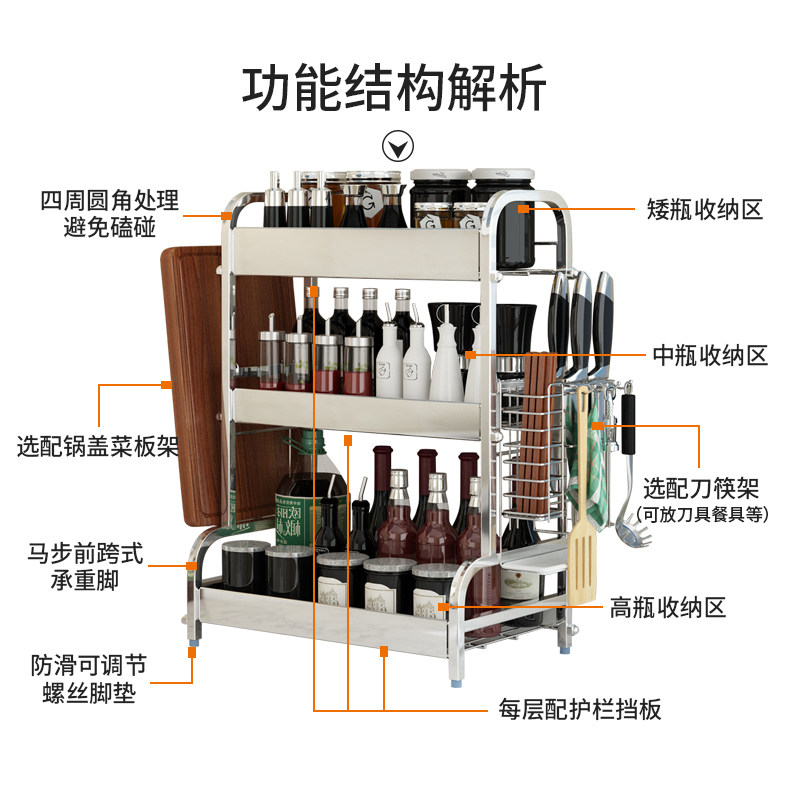 Stainless Steel Kitchen Racks Home Condiments Oil Salt Sauce Vinegar Contained Knife table surface multilayer seasonings shelf