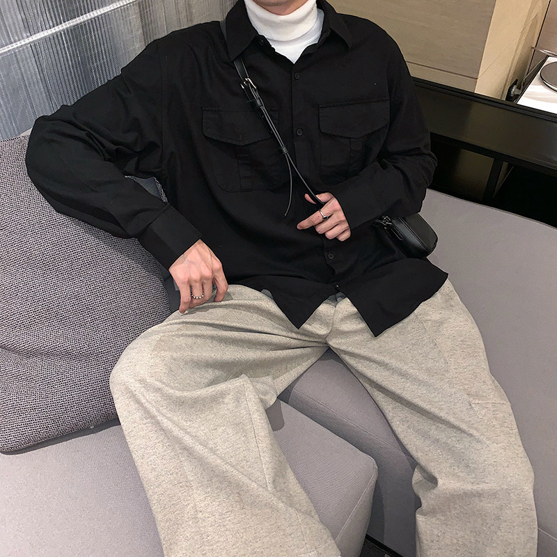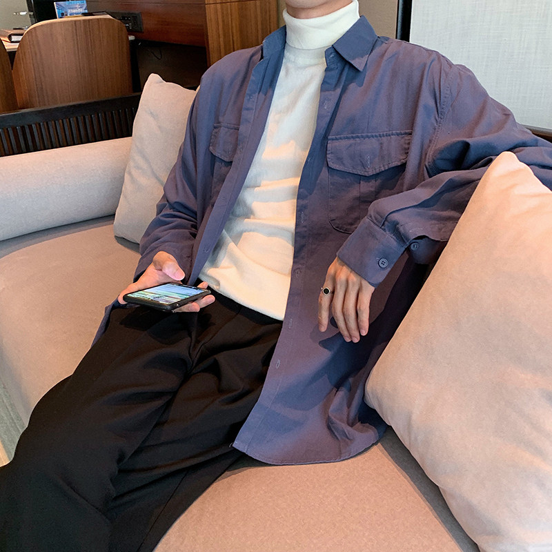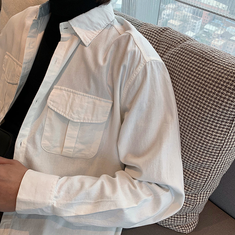 Hualun cotton shirt Men's long-sleeved Korean version of the trend handsome brand warm frock casual inner tie inner tie shirt