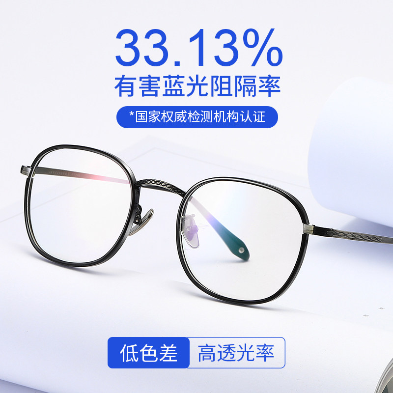Pure titanium glasses frame men's tide retro personality big face round face myopia glasses men's eye protection blue light radiation protection